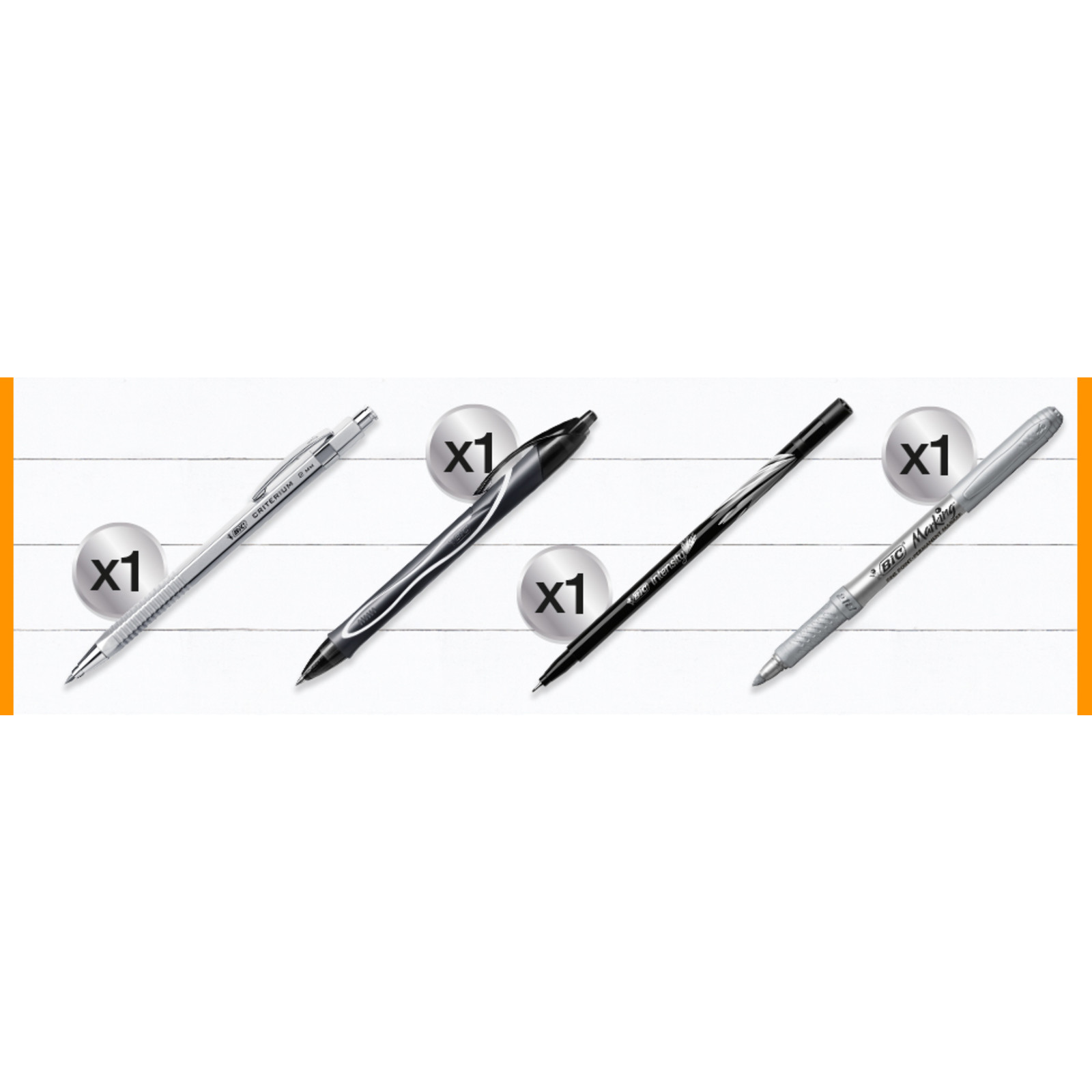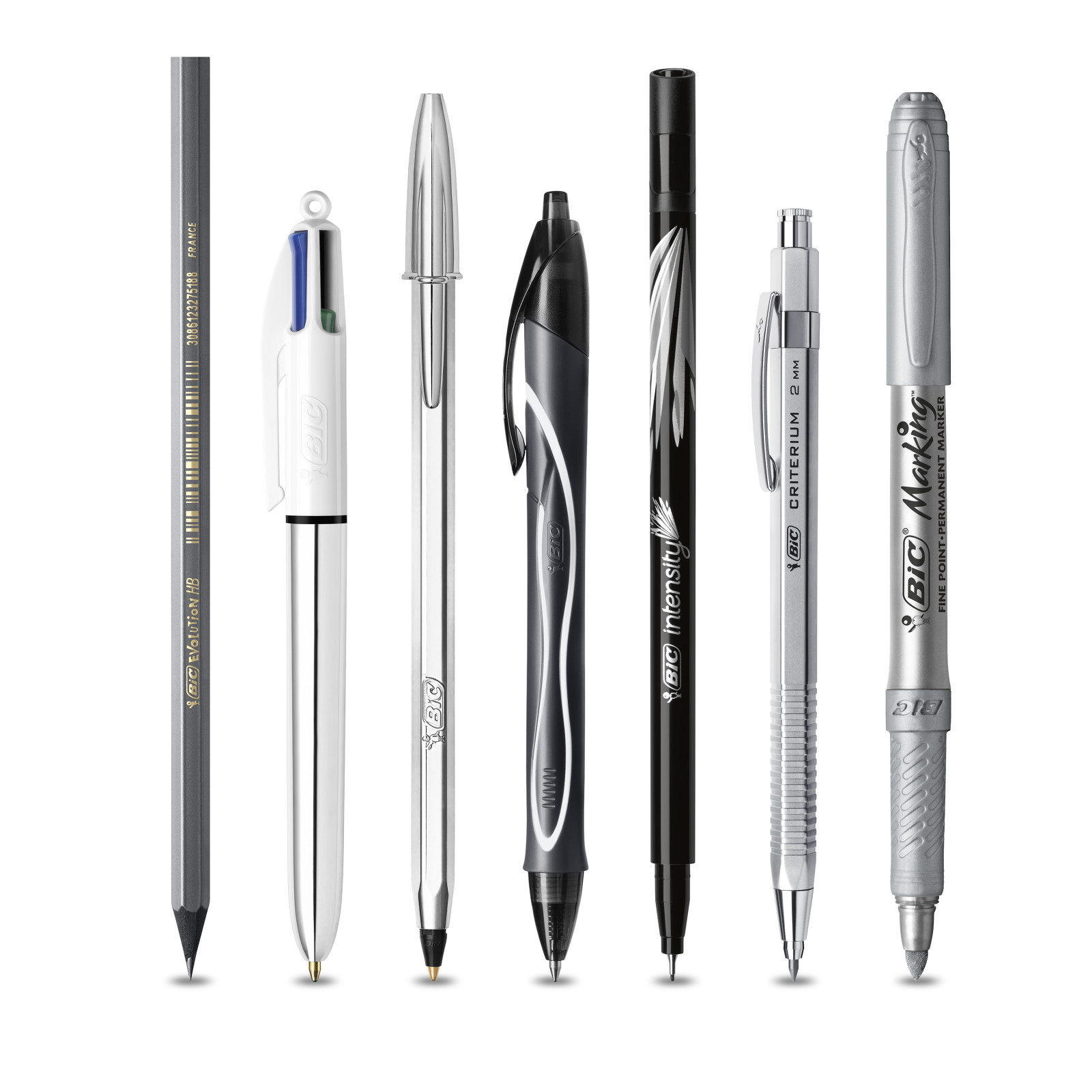- Το σετ περιέχει 3 ασημί στυλό Shine: 1 BIC 4Colours στυλό, 1 BIC Cristal στυλό διαρκείας και 1 μαύρο στυλό Gel BIC Gel-ocity Quick Dry