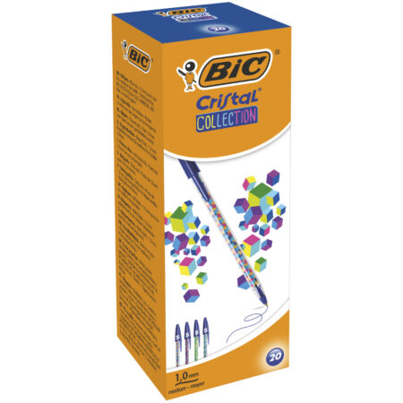 BIC Cristal Collection στυλό διαρκείας σε 4 πολύχρωμα 3D σχέδια κύβων, μεσαία μύτη (1.00 mm) – Μπλε, 20 τεμ